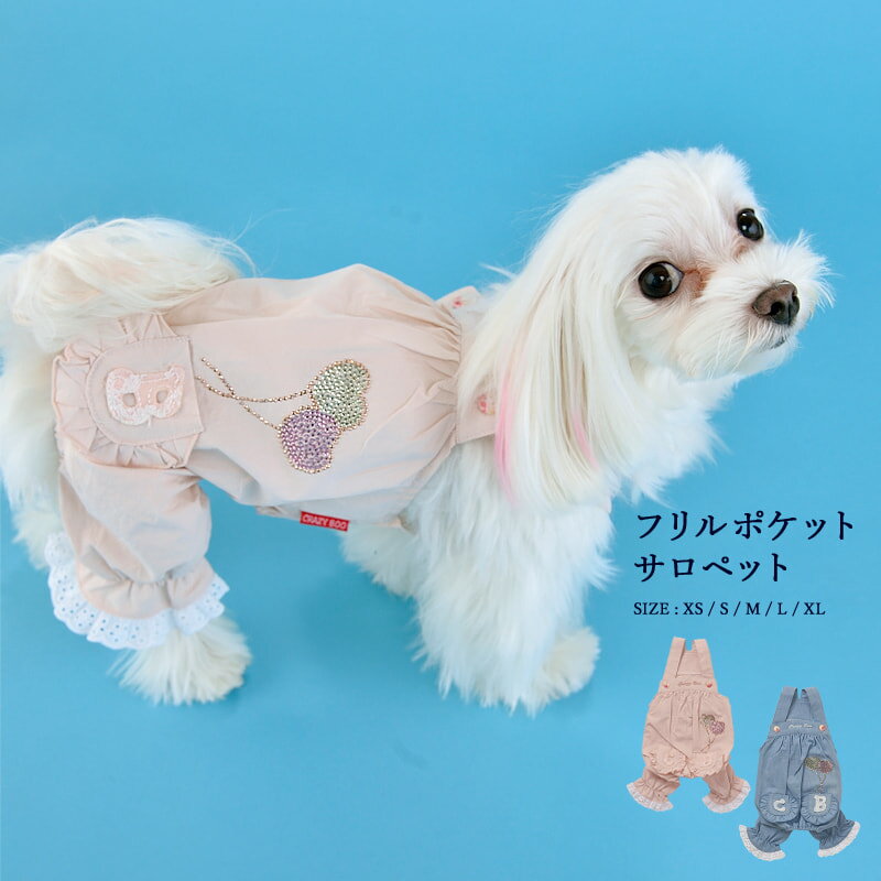 CRAZYBOO / クレイジーブーフリルポケット サロペットXS / S / M / Lサイズピンク / ブルー小型犬 / チワワ / ヨーキー / シーズー / プードル犬服 / 犬の服 / ドッグウェア春夏コレクション