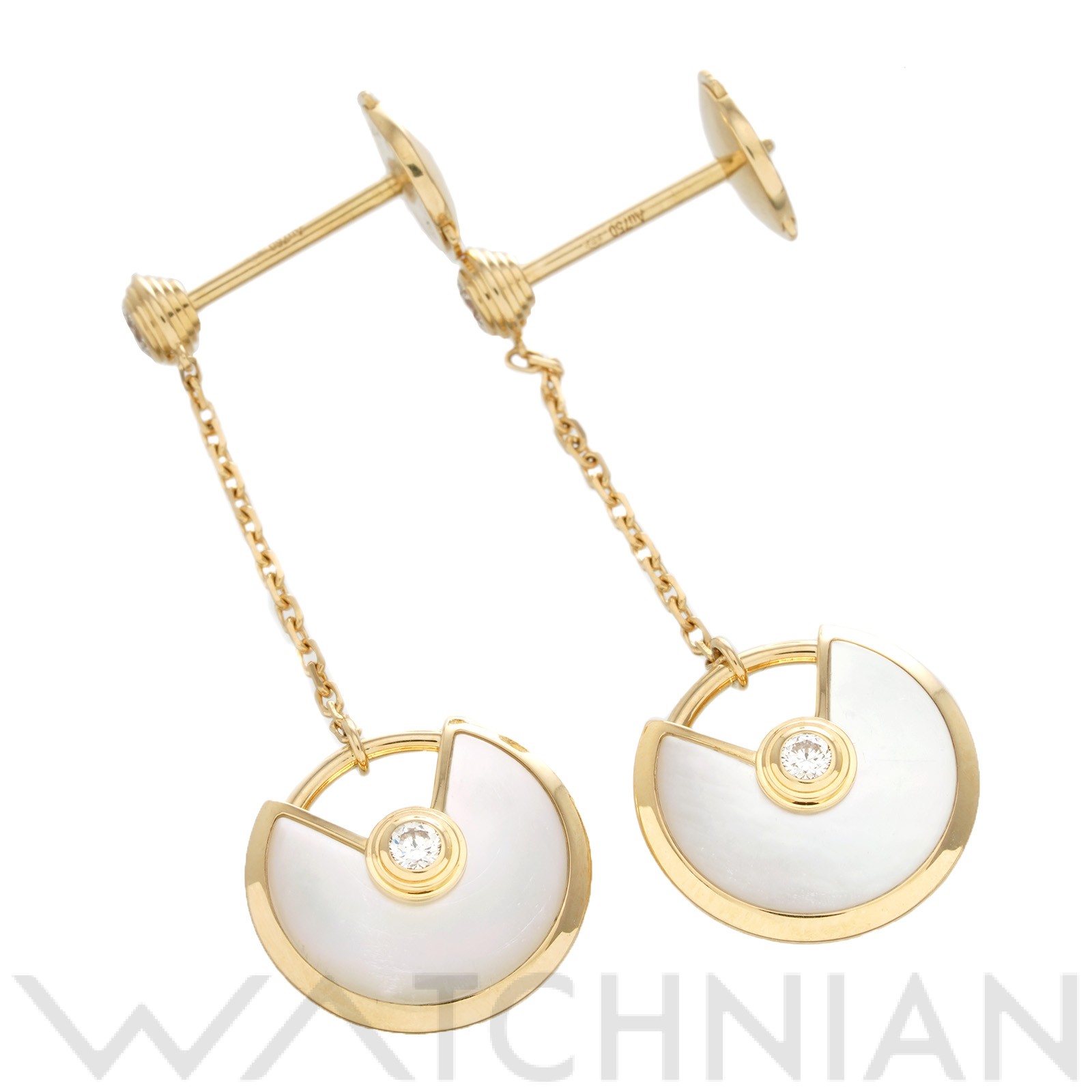 【9/4〜5は全品P2倍&最大50,000円OFFクーポン配布中!】【中古】 カルティエ CARTIER アミュレット ドゥ カルティエ ピアス XS K18イエローゴールド/ホワイトシェル/ダイヤモンド レディース ピアス