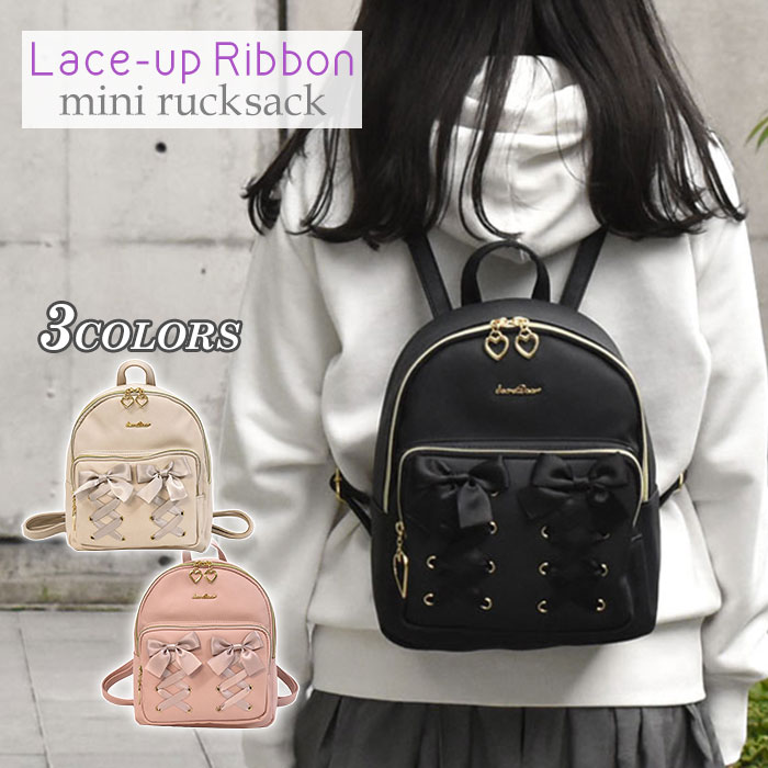 ミニリュック レディース 大人 リュック おしゃれ レザー 軽量 軽い 黒 大容量 小さめ 女子 大学生 ガーリー/ フェイクレザー レースアップ リボン /ミニ リュックサック ミニリュックサック バッグ オシャレ かわいい 可愛い 大人女子 合成皮革 合皮 PU くすみカラー/