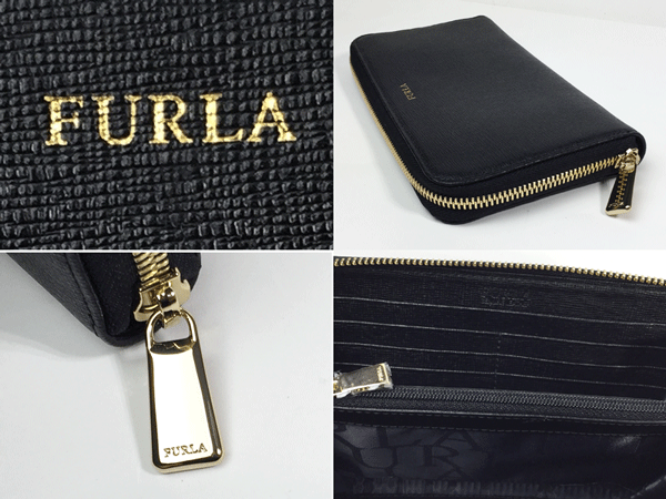 フルラ 長財布 FURLA 846079 ONYX ゴールドカラー ロゴ入り オニキス ブラックレザー ラウンドジッパー ロング ウォレット 長財布