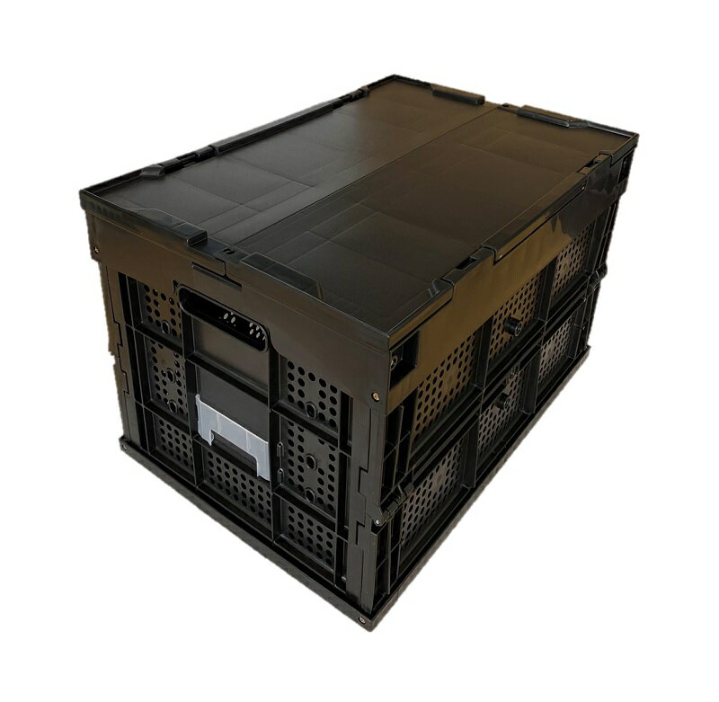 松本産業 折りたたみコンテナ 網目 フタ付き 50L ブラック ( F50ABL ) カードホルダー付き